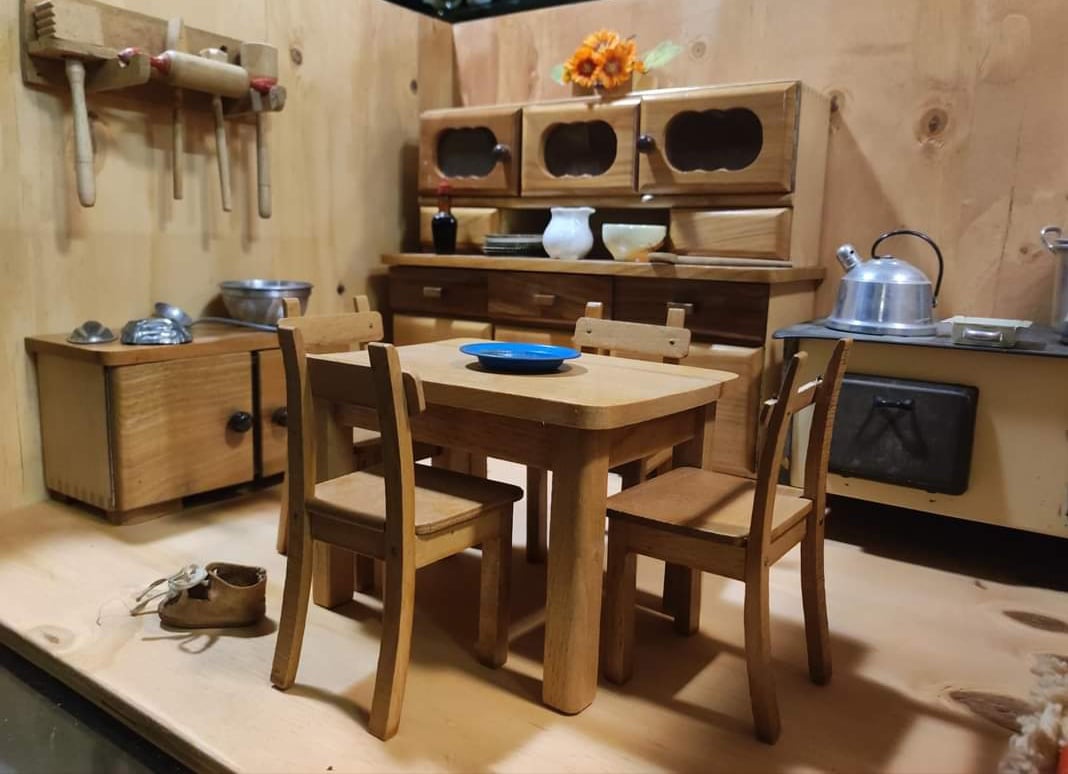 Miniaturní kuchyně ve viktoriánském stylu připomínající období přelomu 19. a 20. století.