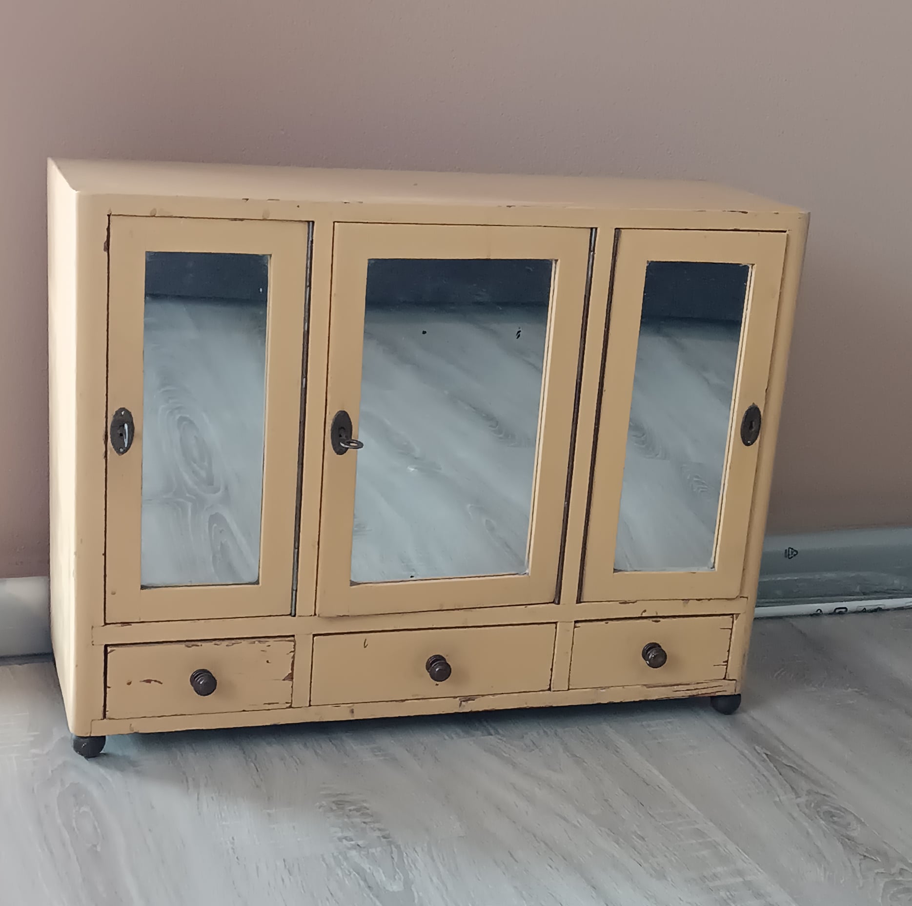Kredenc výška 60 cm, šířka 38 cm, hloubka 19,5 cm, skříň výška 60 cm, šířka 38 cm, hloubka 18 cm.