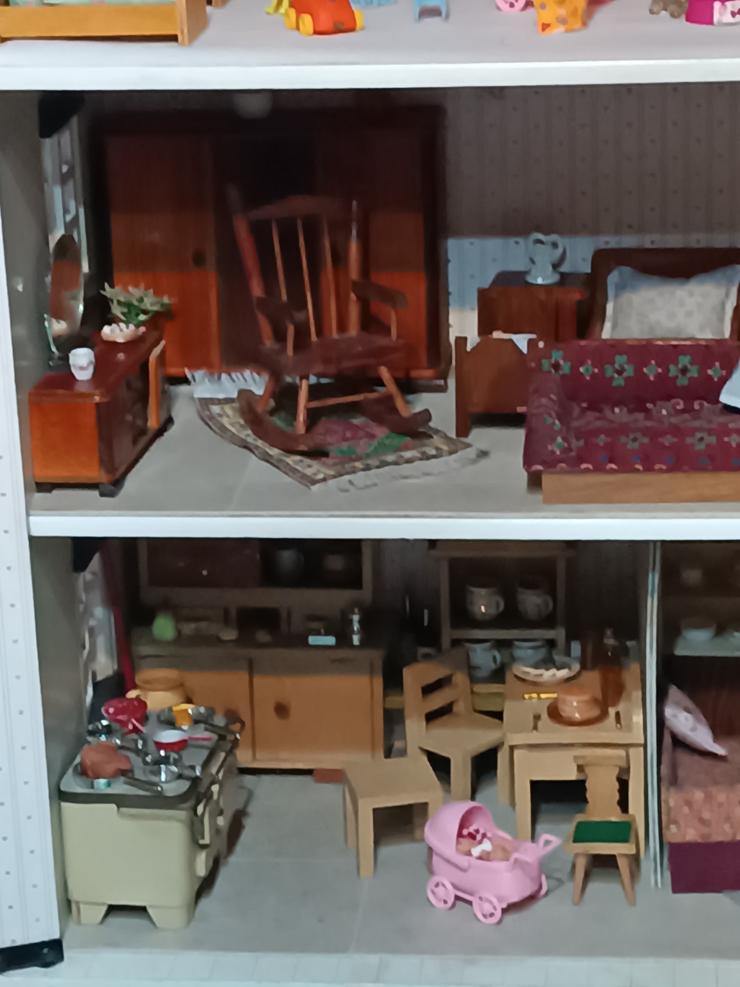Domeček pro panenky s vybavením v retro stylu 50. - 60. léta 20. století